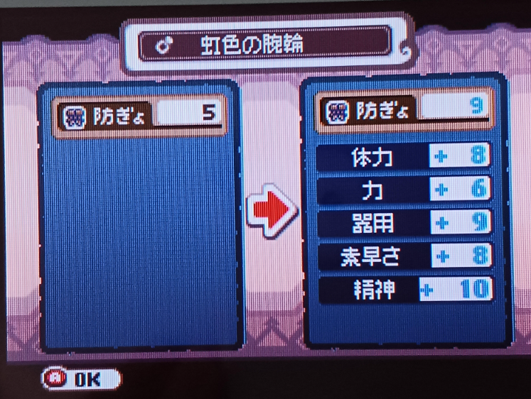 ①虹色の腕輪、古代樹の靴、古代樹の兜は(合成前についていたもの含め)初期ステータスでついたものの種類数が3種類に達すると、その後のボーナスの個数が2個に減ってしまうっぽいです。